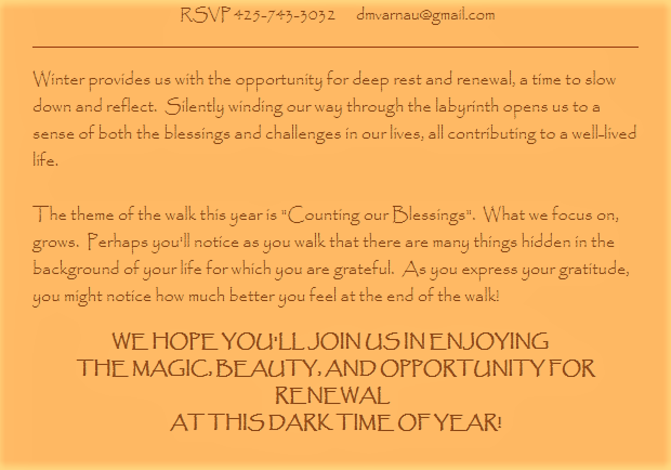 Planning to be anywhere near Mercer Island on New Year's Day? If so, stop by for a labyrinth walk at the Congregational Church on Mercer Island!